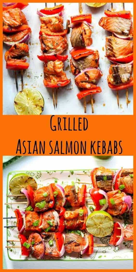 Grilled Asian Sesame Salmon Kebabs and easy and delicious summer meal and perfect for entertaining. I think everyone loves food on a stick, because, it's just fun, right? Skewers are also perfect for grilling. And salmon just has a natural affinity for Asian flavours.