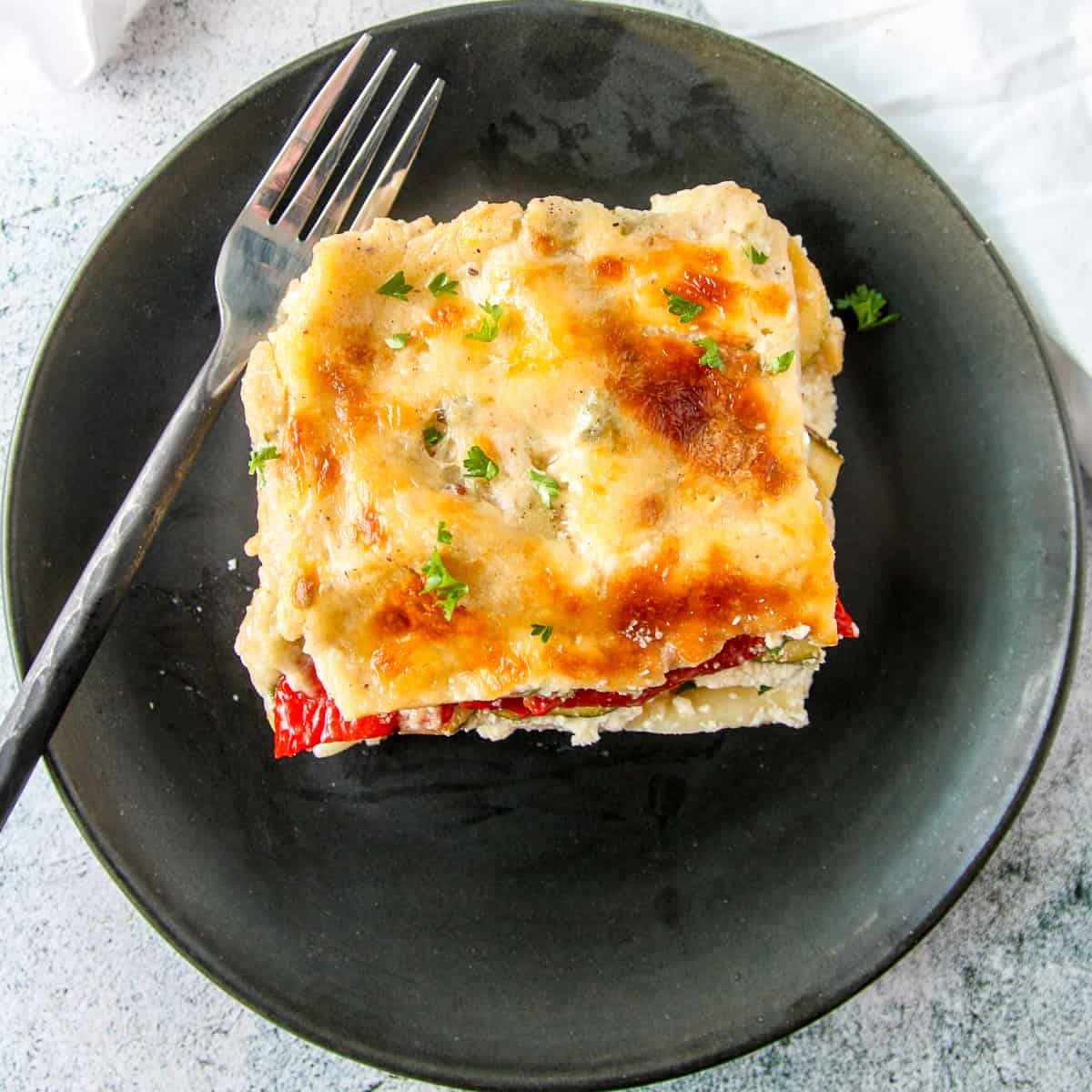 This vegetable lasagna with white sauce is comforting and creamy! The velvety white sauce makes this a luscious, satisfying dish that's perfect for vegetarians and anyone who loves a hearty pasta bake.