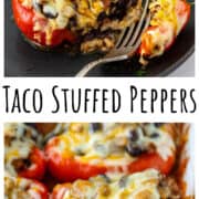 We love this recipe. These taco stuffed peppers are delicious, easy to make and nutritious. You can't go wrong!