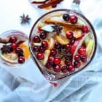 We usually think of sangria as a summer drink, but this winter white sangria is a perfect cold-weather wine cocktail for entertaining during the holidays. Packed full of delicious winter fruits -- oranges, cranberries, apples, and pears -- this holiday white wine sangria also showcases the warm, comforting winter spices of ginger, cinnamon, and star anise. Whether you enjoy simple, intimate gatherings or larger holiday events, this white wine sangria recipe will become your new favorite festive cocktail.